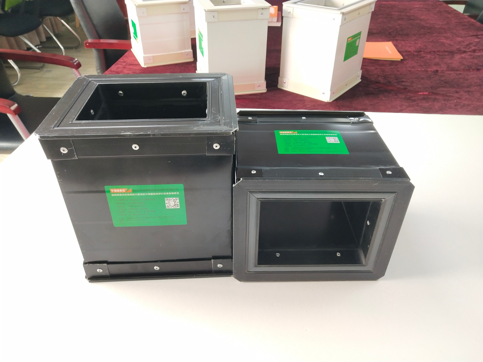 該風管系統(tǒng)采用防腐耐酸堿處理/耐腐蝕的室外專用涂層雙面0.5mm優(yōu)質彩鋼,中間保溫層采用定制無機膠水,復合85K 高密度無甲醛玻纖,粘結密實,經過電腦控制切割加工,精密度可達0.05mm。內層彩鋼采用無縫拼接,無漏風,禁止使用玻璃膠填縫,并配置厚度1.2mm專用全密閉的雙路鋁合金斷橋隔熱法蘭,鉚釘直徑4.2mm,間距不大于120mm,法蘭之間采用不燃無機隔熱膠帶,C型鋁合金插條快速連接。